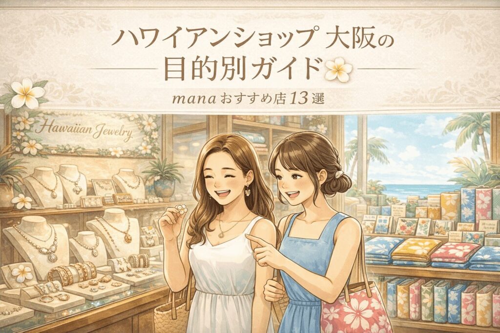 こんにちは!「アロハ旅ナビ」の運営者、manaです。大好きなハワイになかなか行けない時、私はよく大阪の街へ「ハワイ」を探しに出かけます。実は大阪には、現地直送の雑貨から本格的なフラ用品、一生モノのジュエリーまで、素敵なハワイアンショップが驚... -