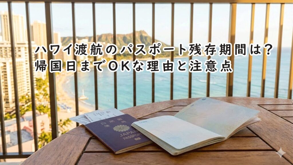 久しぶりのハワイ旅行、準備を進める中でふと気付くのが「パスポートの有効期限」ですよね。「残存期間が6ヶ月ないとダメ」という話や「帰国日まであれば大丈夫」という情報が飛び交っていて、結局どっちなの?と不安になっている方も多いのではないでしょ... -