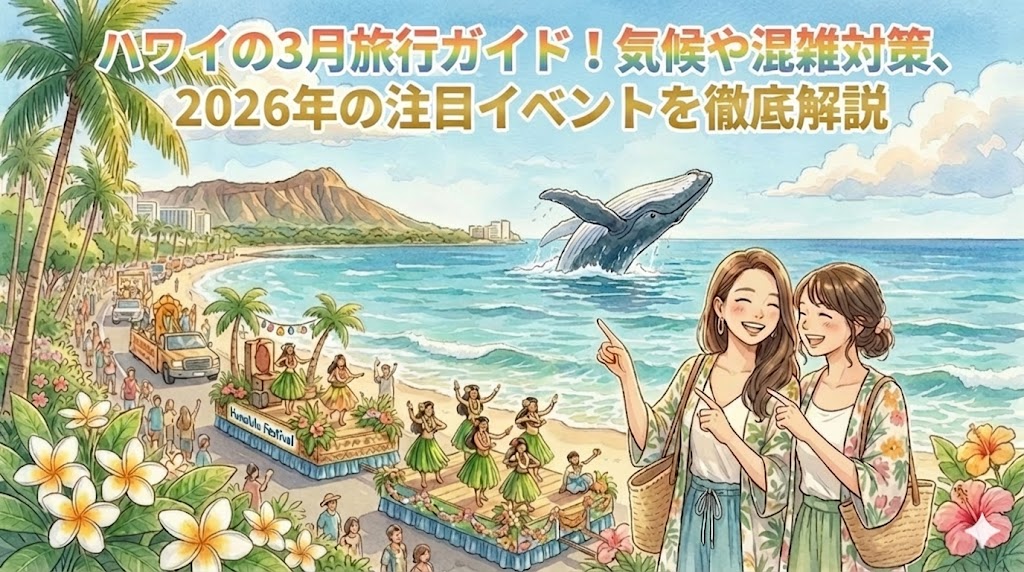 3月のハワイ旅行を計画中のみなさん、アロハ!この時期のハワイは、冬から春へと移り変わる特別な季節です。春休みの混雑や雨が心配という方も多いかもしれませんが、ポイントさえ押さえればとても快適に過ごせる「狙い目」の時期でもあるんですよ。服装の... -