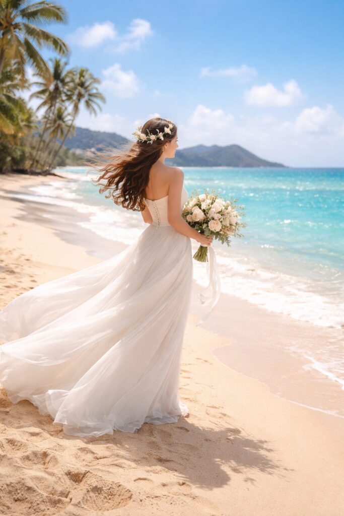 ビーチフォトでの風や暑さに強いアーティフィシャルフラワー