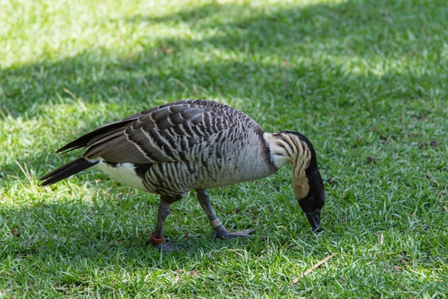 一時期はわずか30羽ほどまで減少しましたが、懸命な保全活動により、今ではカウアイ島やハワイ島の国立公園で見ることができます。道路を横断することもあるので、ドライブ中は「Nene Crossing」の標識に注意して、安全運転で進みましょうね。