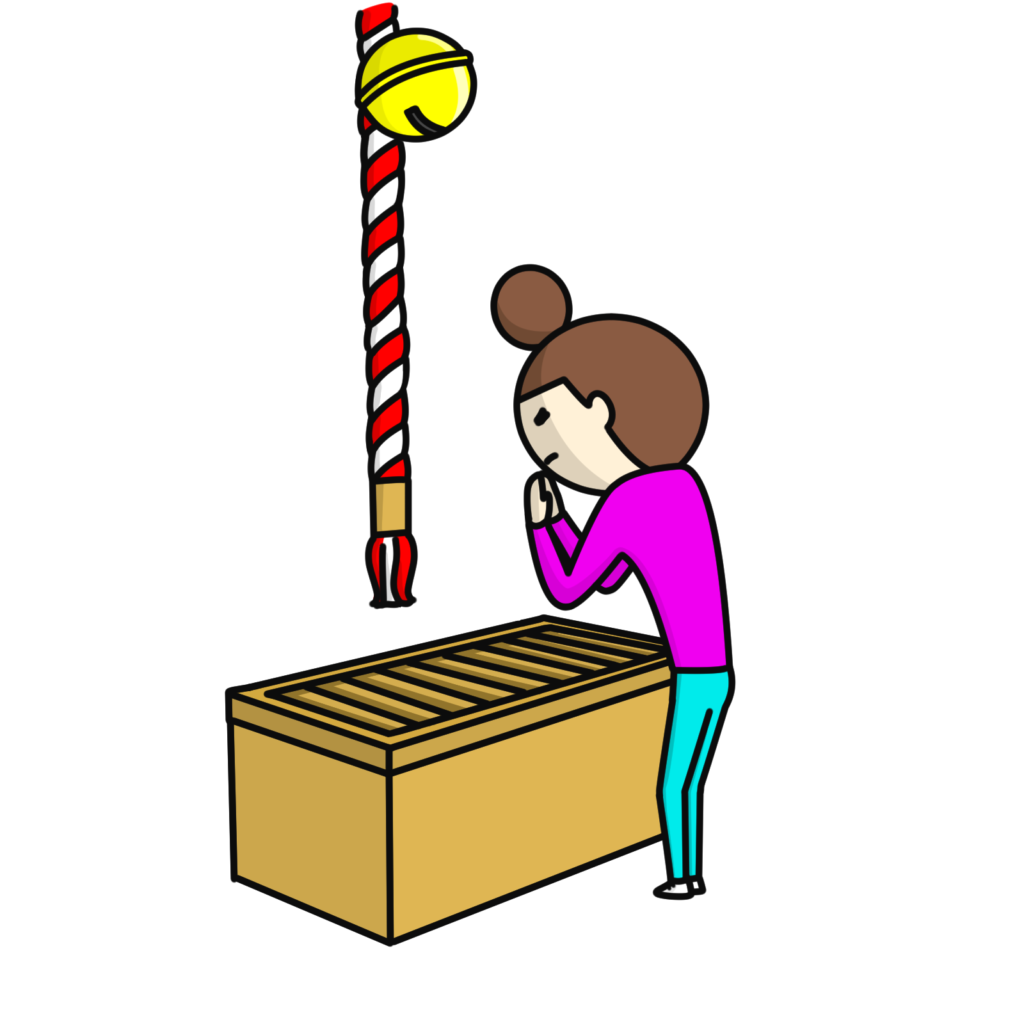 - お賽銭はドル(コインや紙幣)で感謝を込めて納める
