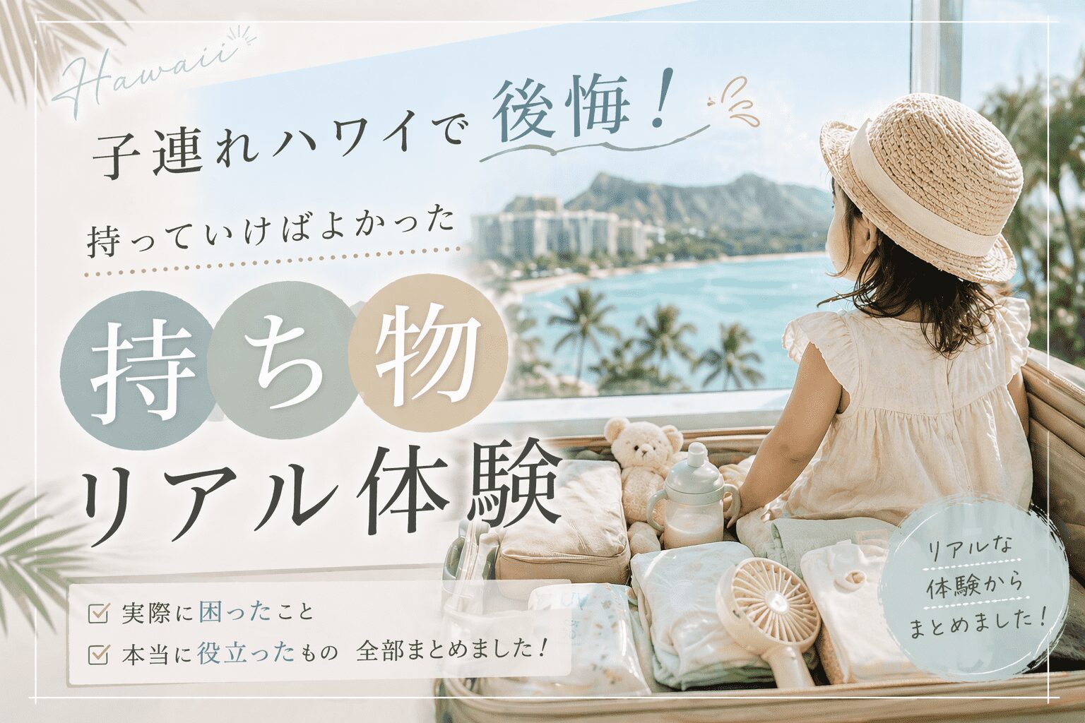 実は、子連れハワイは準備で9割が決まります。持ち物次第で、最高の楽園にも、ちょっとした地獄にもなってしまうんです。私自身、初めての子連れハワイでは「足りなければ現地で買えばいいや」と軽く考えて大失敗。「正直これ持ってこなくて詰んだ…」とホテルで頭を抱えた経験があります。